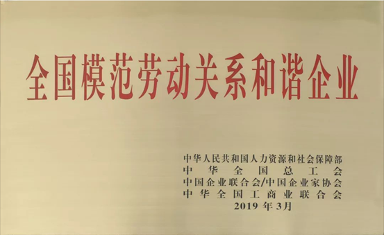 “全国模范劳动关系和谐企业”的评选是由人力资源和社会保障部、中华全国总工会、中国企业联合会/中国企业家协会、中华全国工商业联合会组织的。自2005年至今,国家先后四次评选表彰了全国模范劳动关系和谐企业,在全社会发生了广泛影响和良好的示范效应。此次评选重点是党的十八大以来在和谐劳动关系创建活动中体现突出、具有示范引领作用的单元。